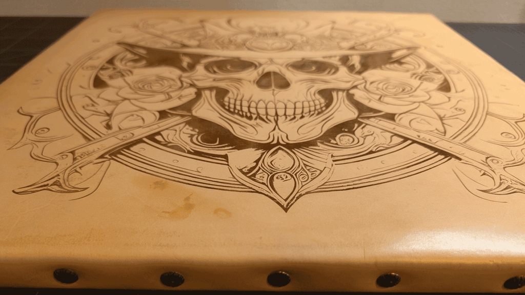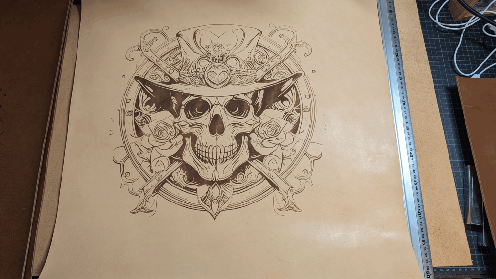 ここも結構試行錯誤しましたね。最初は細部が上手く出ず、結構な量の革を無駄にしました。