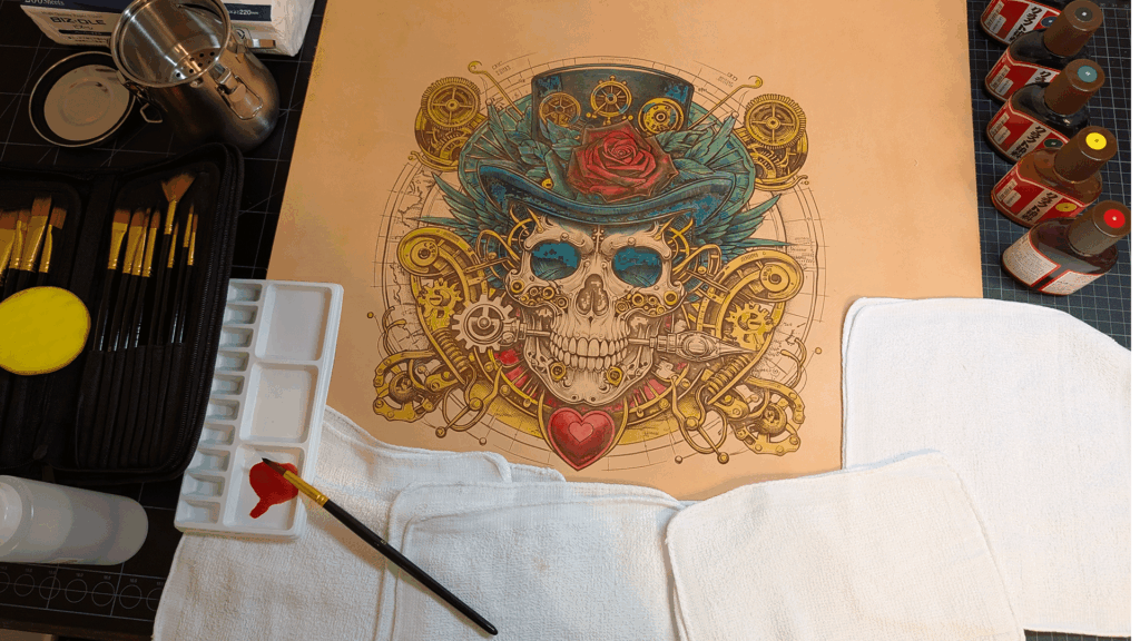 革にマスキングテープ…、そしてコンセプトに合わない顔料による彩色